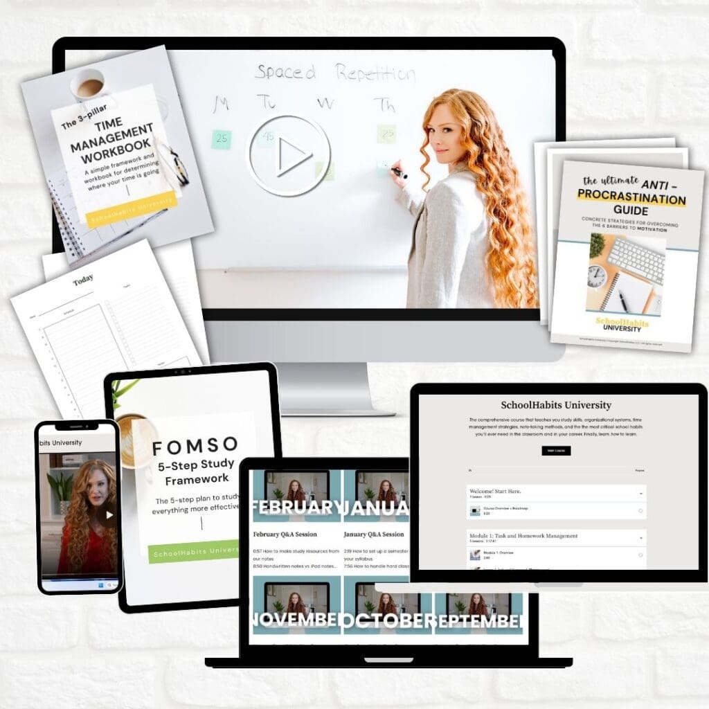 If you’re tired of spending hours “studying” only to bomb your tests, or if you’re sick of feeling like you’re working hard but not seeing results, SchoolHabits University will change that. I teach you a complete system for studying the right way, taking notes that are useful for once, and managing your time without constant stress. It’s designed specifically for students who are done wasting effort on methods that don’t work. Learn more here.